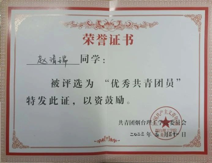 1.校级优秀共青团员