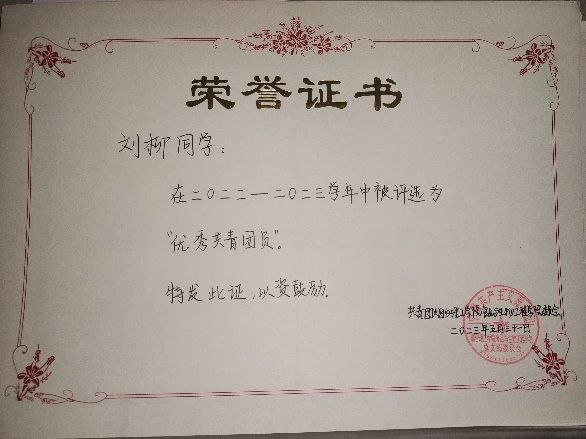 刘柳,食2101-1班,生物工程专业,共青团员,曾任哈哈体育组织部副部