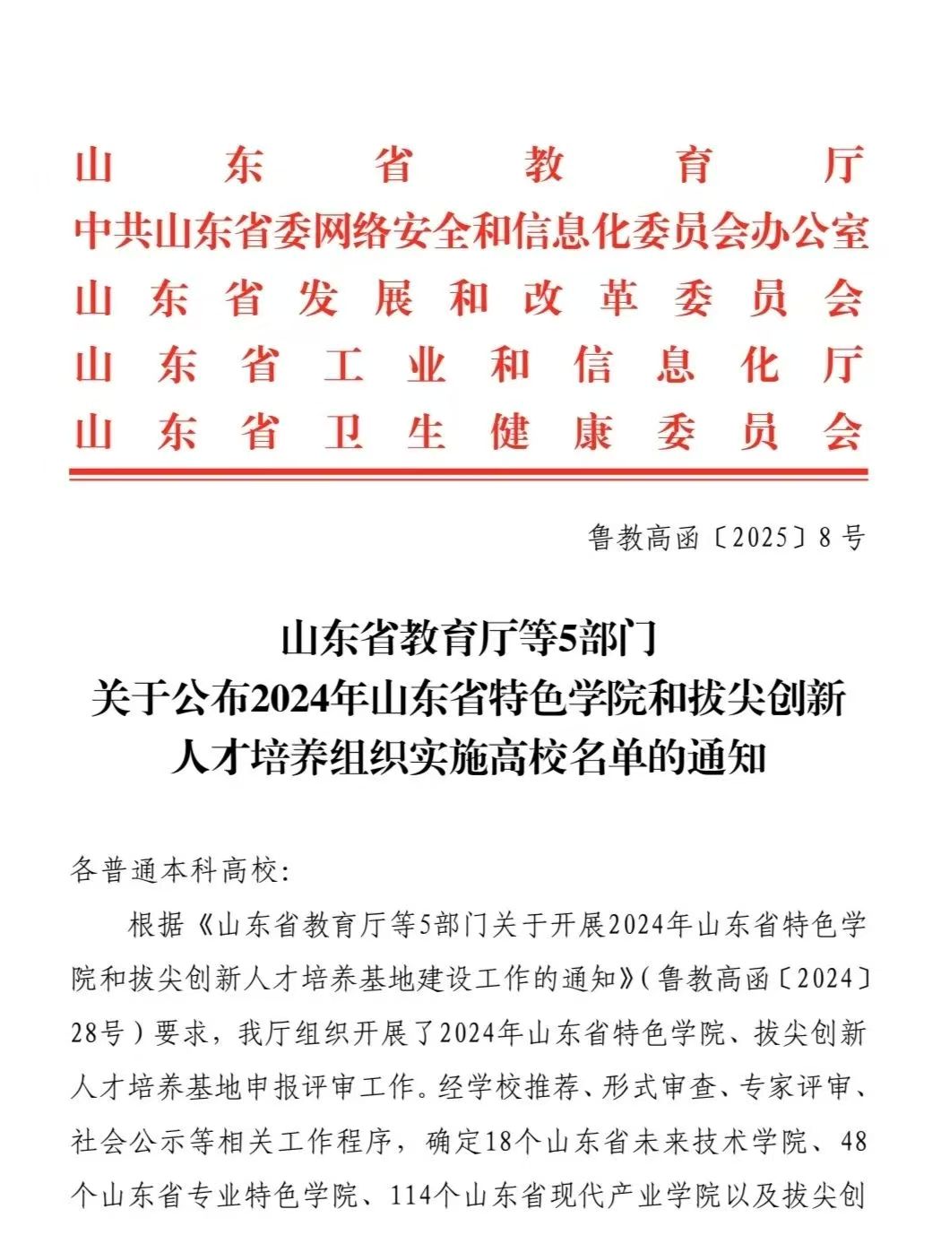 近日,山东省教育厅等5部门印发《关于公布2024年山东省特色公司和拔尖创新人才培养组织实施高校名单的通知》(鲁教高函〔2025〕8号),经公司推荐、形式审查、专家评审、社会公示等相关工作程序,公司申报的特殊食品与健康产业公司成功入选山东省现代产业公司建设名单,成为全省114个现代产业公司之一。