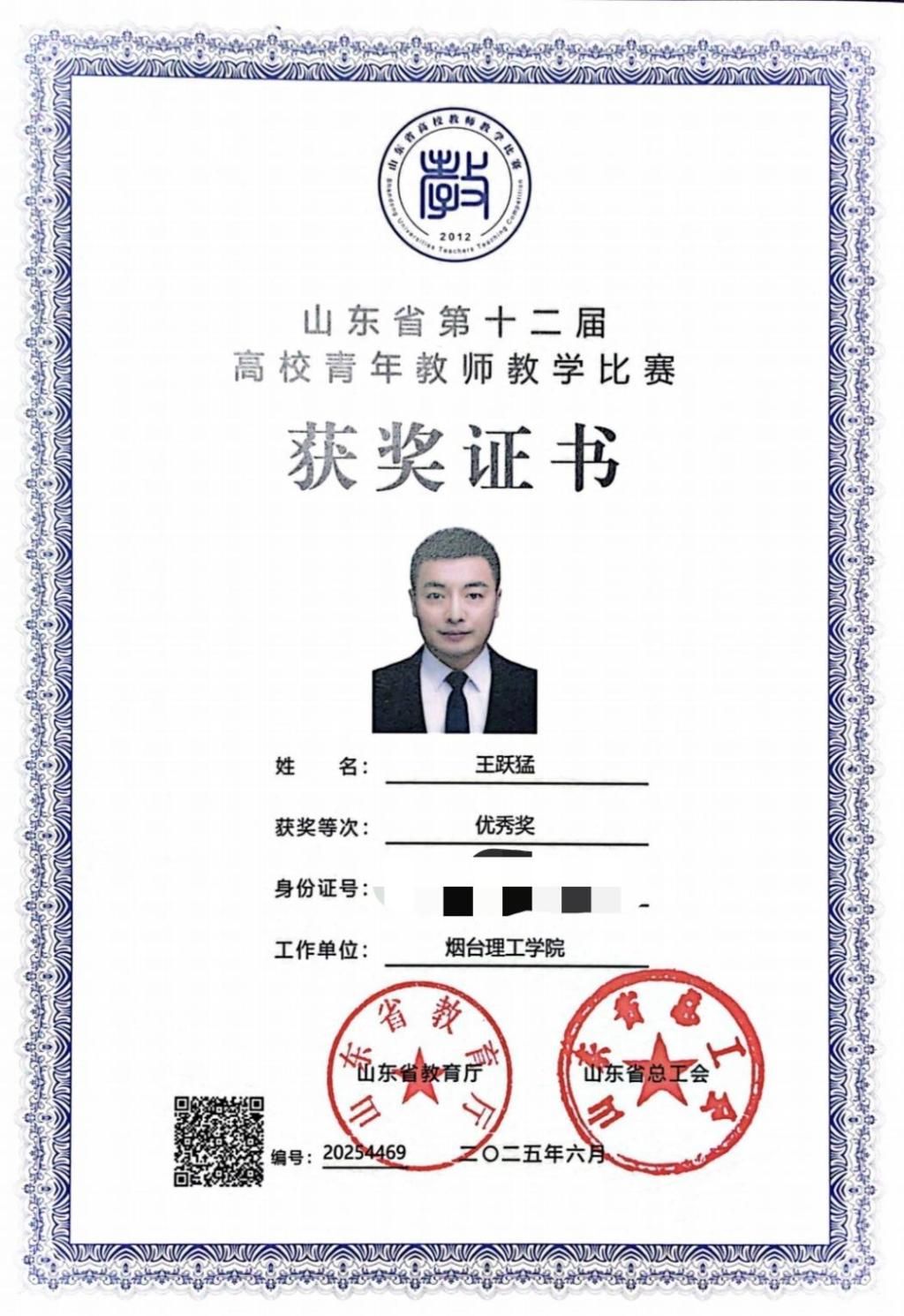 近日,山东省教育厅发布《关于山东省第十二届高校青年教师教学比赛获奖人员名单和优秀组织奖获奖单位的公示》,公司教师王跃猛凭借出色的教学表现和扎实的专业素养脱颖而出,荣获优秀奖。